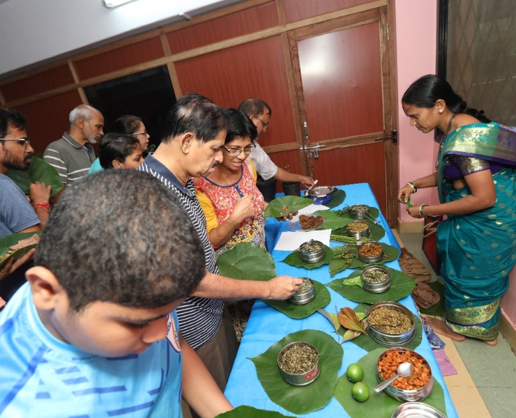Moreover, well-known Ayurveda Acharya and Vaidya Ms. Madhavilata Dixit spoke on the medicinal importance and relevance of these seasonal wild vegetables in Ayurveda and our day to day dietary nutrition. These food items were served on traditional plates made from leaves called “chadivda” to all the dignitaries present and the participants.